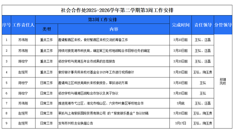 2025-2026学年第二学期第3周工作安排