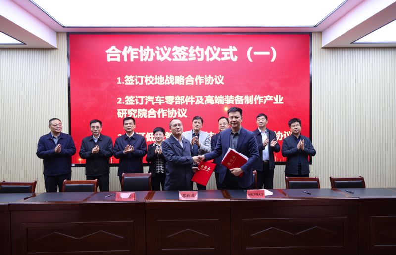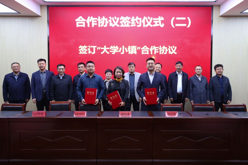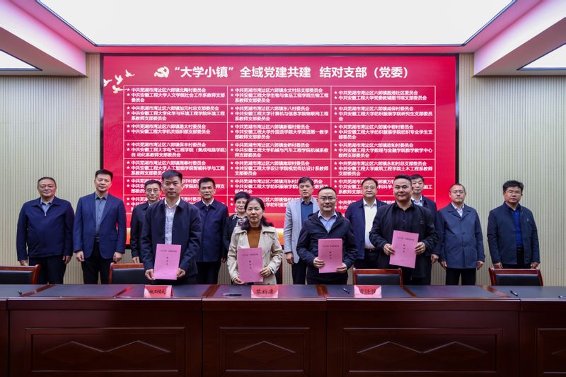 凤权与程金明分别代表校地签订了《安徽工程大学与湾沚区人民政府战略合作协议》、共建汽车零部件及高端装备制造产业研究院子协议、共建低空智联产业技术研究院子协议;纺织服装学院党委书记徐珍珍与湾沚区农业农村局局长王峰、湾沚区六郞镇镇长陈琦共同签订了“大学小镇”子协议;人文学院社会工作系教师党支部与北陶村党委、人工智能学院智能科学与工程系教师党支部与周皋村党委、纺织服装学院研究生党支部与咸保村党委、生物工程系教师党支部与永丈村党总支、图书馆党支部与殷港社区党委分别签订了“大学小镇”全域党建共建协议书。