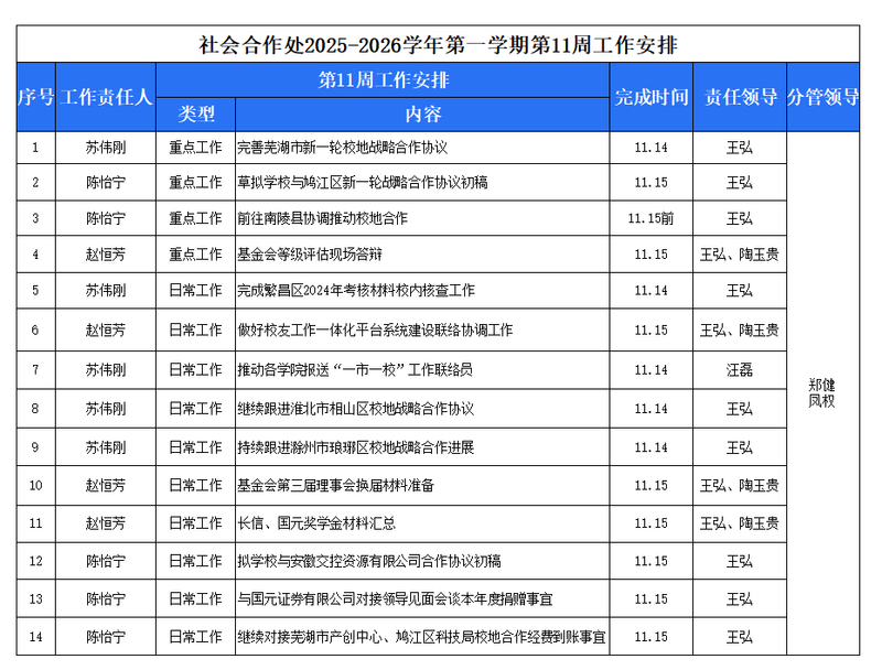 2025-2026学年第一学期第11周工作安排