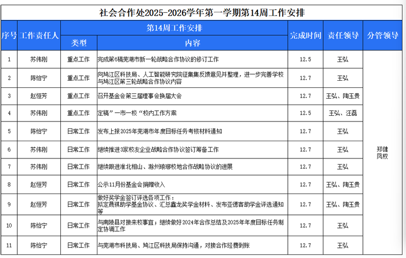 2025-2026学年第一学期第14周工作安排