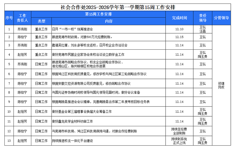 2025-2026学年第一学期第15周工作安排